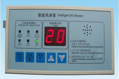 PLC系統(tǒng),控制面盤軟觸點(diǎn)控制開關(guān),智能語(yǔ)音提示功能,LED顯示:風(fēng)淋時(shí)間,照明,內(nèi)外門,內(nèi)設(shè)”急停”按鈕。緊急情況下按下按鈕,系統(tǒng)斷電雙門可同時(shí)打開